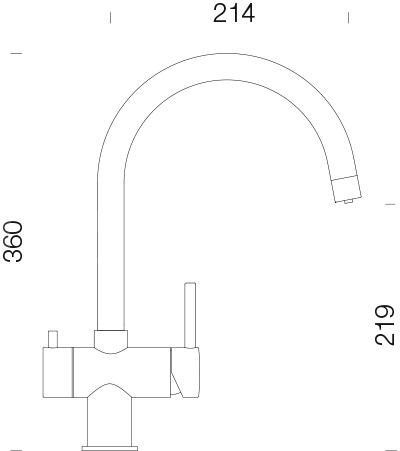 Three-way faucet for filtered and tap (hot and cold) water. The filtered water system is in one arm, separated from the hot and cold water. The faucet features two built-in ceramic cartridges and an aerator ensuring water savings. Included in the package are also components for connection.