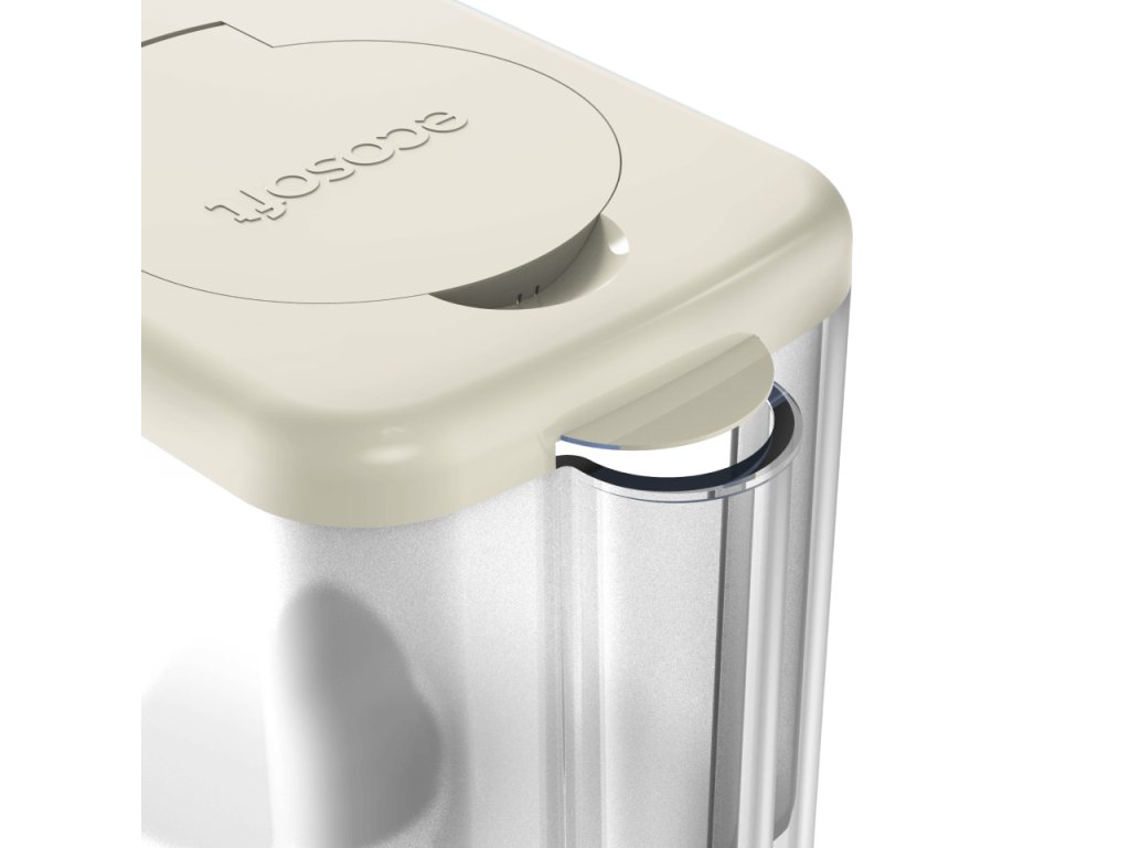 The compact ECOSOFT SLIM filter jug is a stylish and functional choice for simple water filtration in your home. The total volume of the jug is 3.5 l, of which 1.7 l is the volume for filtered water, which corresponds to approximately seven glasses of water. Additionally, the jug fits perfectly into the refrigerator doors thanks to its compact dimensions, providing space-saving in the kitchen.