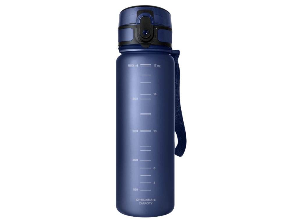 The surface of the bottle is covered with a matte, velvety coating that is pleasant to the touch and reduces the risk of slipping, even when your hands are wet. It features volume markings in milliliters and ounces, making it easy to track your daily water intake. Additionally, the bottle is equipped with a practical wide strap that facilitates holding the bottle and ensures safe handling. A special cap prevents unintentional opening and spillage of water.