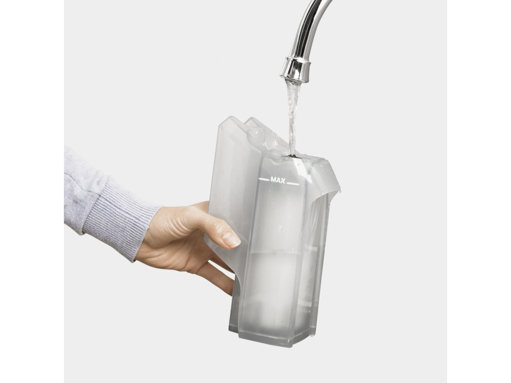 - Non-stop steam and integrated descaling cartridge - Thanks to the intelligent descaling cartridge, the filled water is fully automatically descaled. The removable tank can be easily filled at any time - for continuous steam without interrupting work.