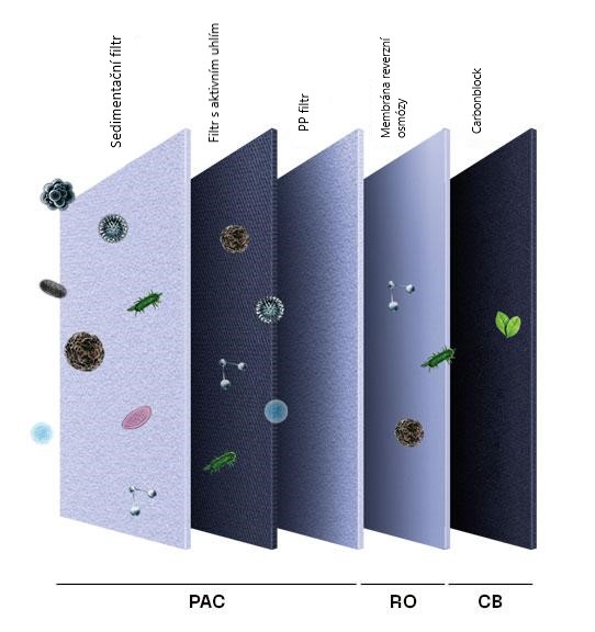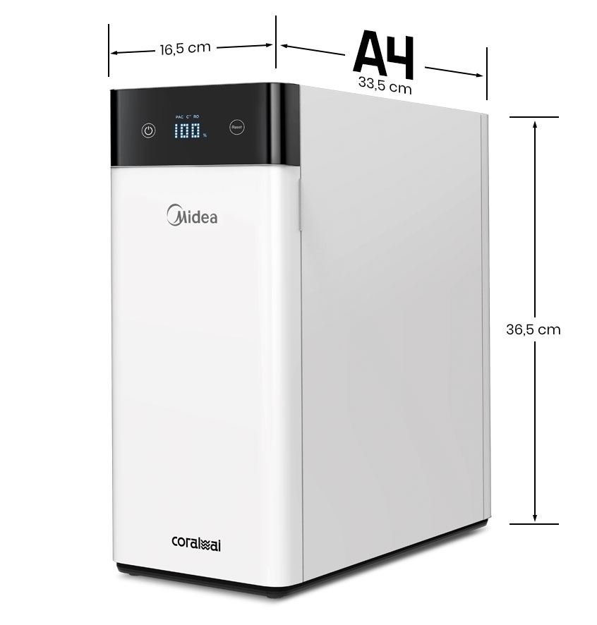 Filtration The AQUA H600 Reverse Osmosis features a three-stage filtration – mechanical filter, carbon filter, GPD 600 membrane. The foundation is a RO membrane with openings the size of a water molecule, which is 0.0005 microns. The size of these openings in the membrane guarantees the capture of all unwanted substances with a 95% efficiency. Larger substances include bacteria, viruses, molecules of all chemical elements, herbicides, nitrates, and all heavy metals, as well as residual pharmaceutical substances (hormonal contraceptives, psychotropic substances, etc.) that are increasingly present in drinking water. All of this burdens our body. To increase mineral content and pH, we recommend purchasing a special filter for pH enhancement and mineralization. |