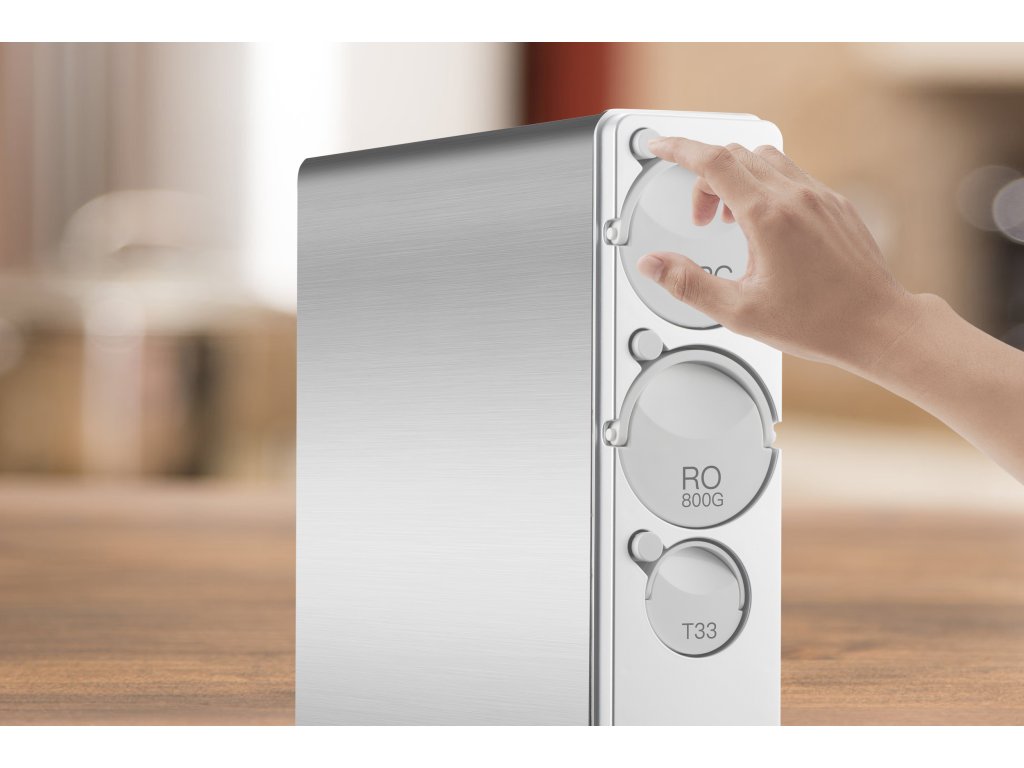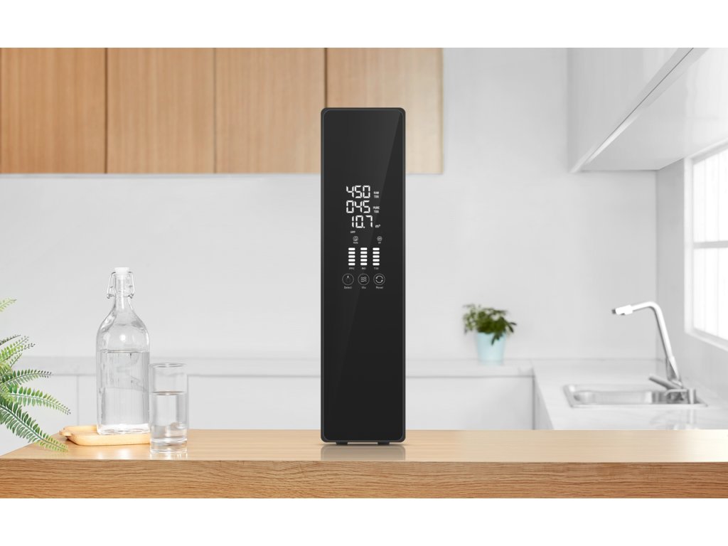 Intelligent filter with reverse osmosis AQUA SL 140 UV and three stages of mineralization, which ensures excellent taste of water ideal for drinking or cooking. The integrated UV LED light provides complete disinfection of water. Water production is 2.2 liters per minute. The device includes a water leak detector, which automatically shuts off the device in case of water leakage from the filtration system. LED indicator on the display informs about the need to change the filters. Included in the package is a faucet with the option to choose three levels of mineralization (medium, low, or very low mineralization). The advantage of the AQUA SL 140 UV filter is its modern design in black or silver and its compact size with a width of only 11 cm. It can be placed vertically or horizontally (e.g., in the base of the kitchen counter). The reverse osmosis membrane is automatically flushed with clean water every 24 hours for 30 seconds, achieving optimal performance of the device and extending the life of the membrane. AQUA SL 140 UV features an intuitive display showing all functions, water quality at the inlet, after filtration, and the status of individual filters. Included in the package is a modern faucet made of stainless steel with a LED indicating the remaining lifespan of the filters. On the body of the reverse osmosis system, you can select one of three operating modes corresponding to medium, low, or very low water mineralization. |
