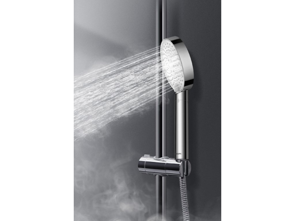 The head offers three flow modes: mixed for rinsing the whole body, gentle for facial massage, and pressure stream, which provides relaxation for tired skin.