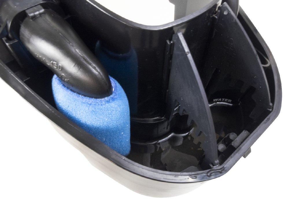 The steam cleaner with vacuuming and detergent injection – ecological cleaning agent (ideal for heavily soiled areas) can be used either as a steam cleaner without vacuuming or with vacuuming. It is ideal for cleaning covers, upholstery, carpets, floors, etc., where the released dirt can be immediately vacuumed dry, or used solely as a vacuum cleaner without steam. The dirt is vacuumed into a water tank with a special filter, fully capturing even the smallest dust.