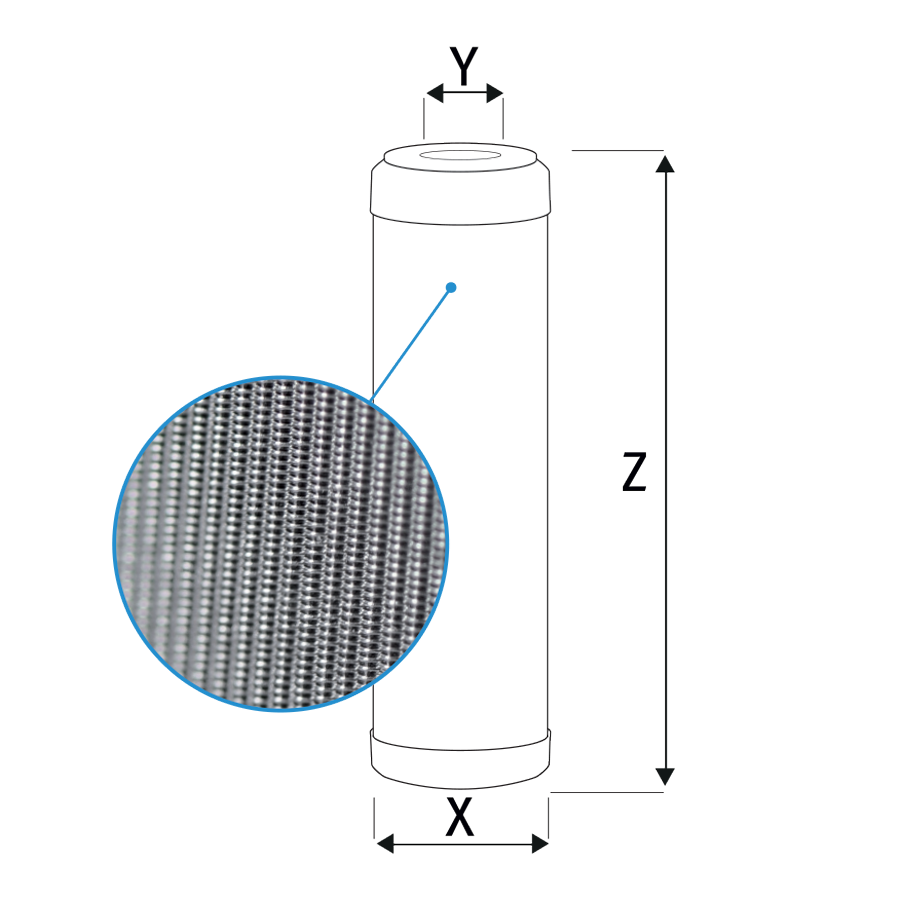 Washable cartridge with stainless steel fiber and filtration fineness 60 mcr designed for water treatment at a temperature of up to 60 °C.